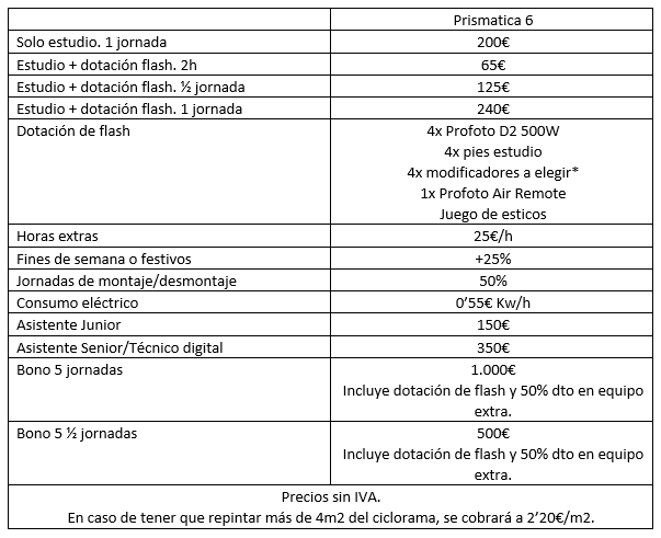 Prismatica Studios están equipados con el mejor equipo de iluminación para fotografía y vídeo, así como técnicos y asistentes con la más alta cualificación para poder ayudarte durante la más exigente de las producciones que puedas desarrollar en ellos.